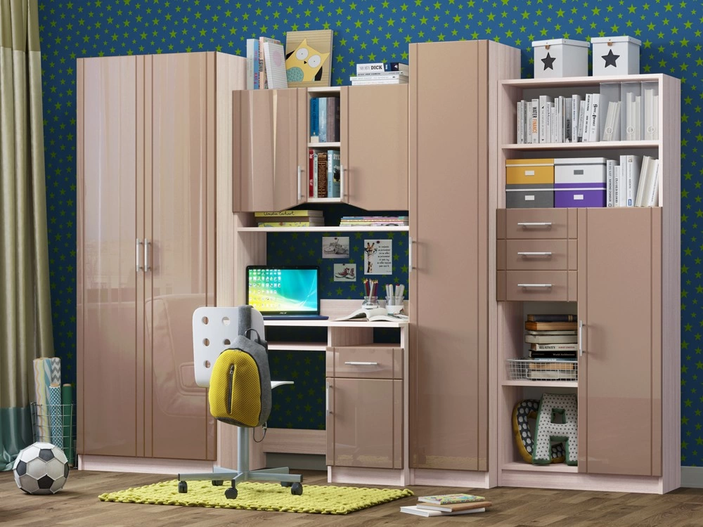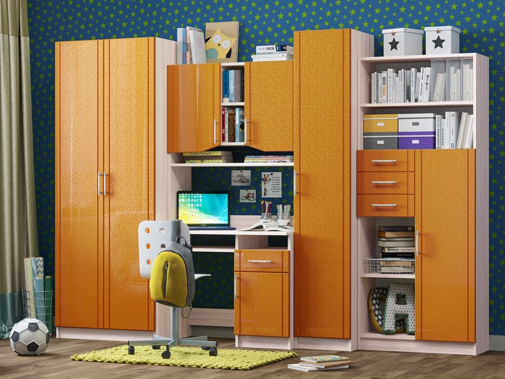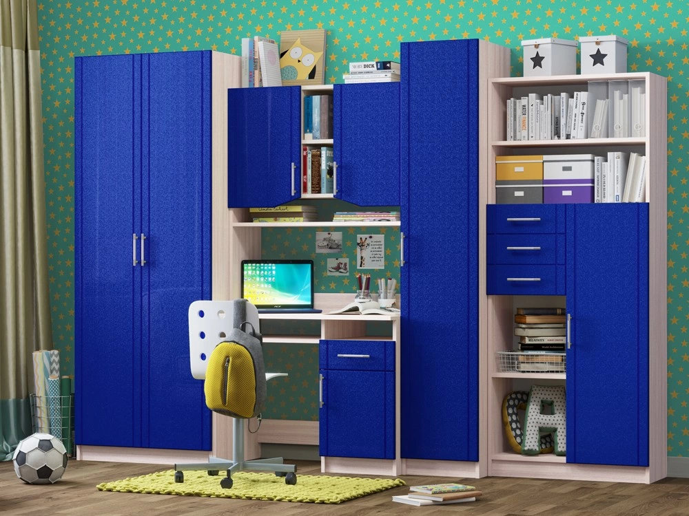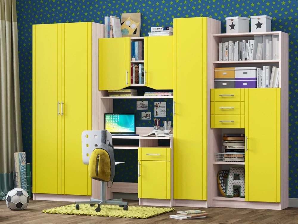 Детская Юниор МДФ – практичный и экономный вариант. Подойдет, как и для подростка, так и для маленьких хозяев комнаты. Вместительные отделения шкафа и большое количество ящиков помогут поддерживать порядок в комнате. Внутри шкаф оснащен штангой для плечиков и огромным количеством полок, что позволит поместить большое количество одежды.