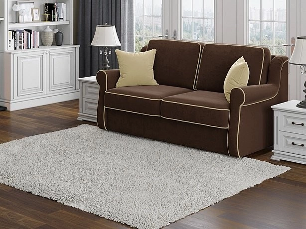 - Традиционные элементы — фигурные подлокотники и декоративные пуговицы в спинке дивана позволяют добиться лаконичного классического дизайна.