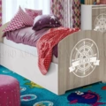 Уникальными особенностями наделяет интерьер морской стиль. Тематические элементы детской "Немо", в сочетании с теплым древесным оттенком, гармонично вписываются в общее интерьерное решение. Обстановка с морской атрибутикой пробуждает фантазию и воображение.