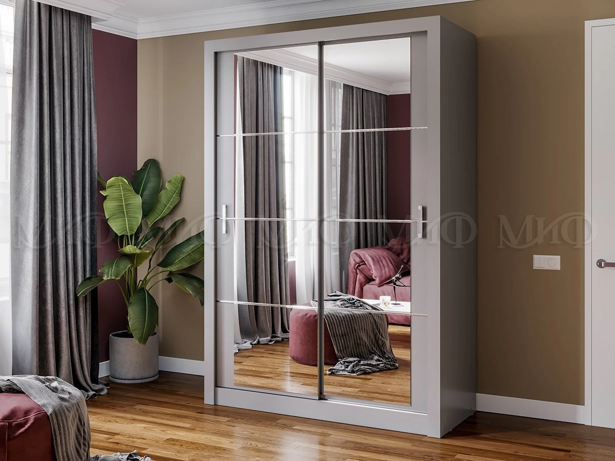 Шкаф-купе двухдверный с зеркалом «Неаполь» идеально подойдет ценителям спокойных цветовых оттенков. Зеркальные фасады с фацетной отделкой делают помещение зрительно шире и светлее. Нужен шкаф? Вы можете купить шкаф купе двухдверный и навсегда решить вопрос хранения большого количества вещей.