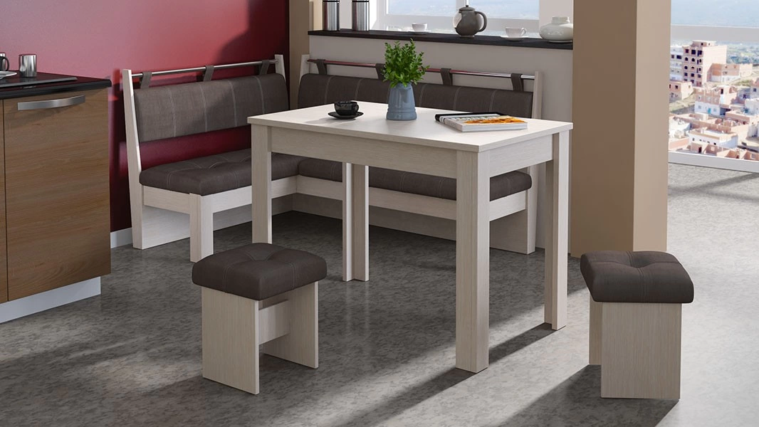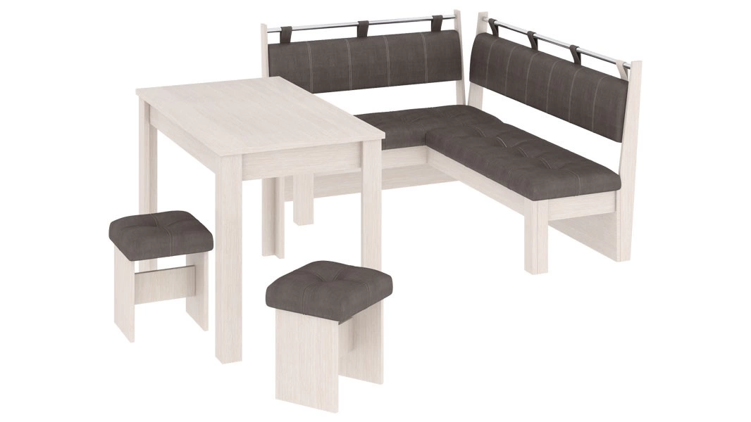- Обеденная зона "Омега" состоит из удобной угловой скамьи, практичного стола и компактных табуретов.