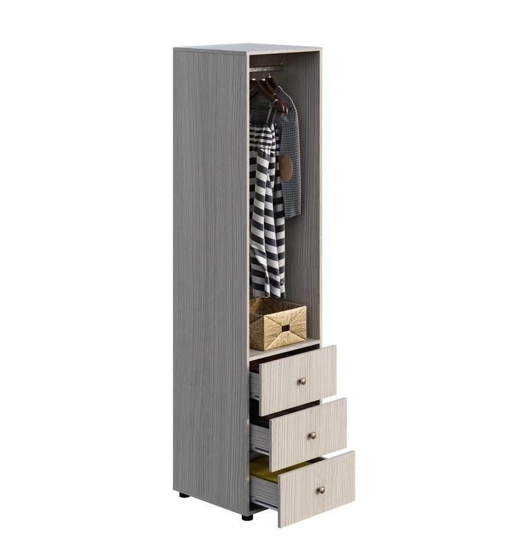 - Пенал оснащен секцией с металлической штангой и выдвижными ящиками на шариковых направляющих глубиной 450 мм.